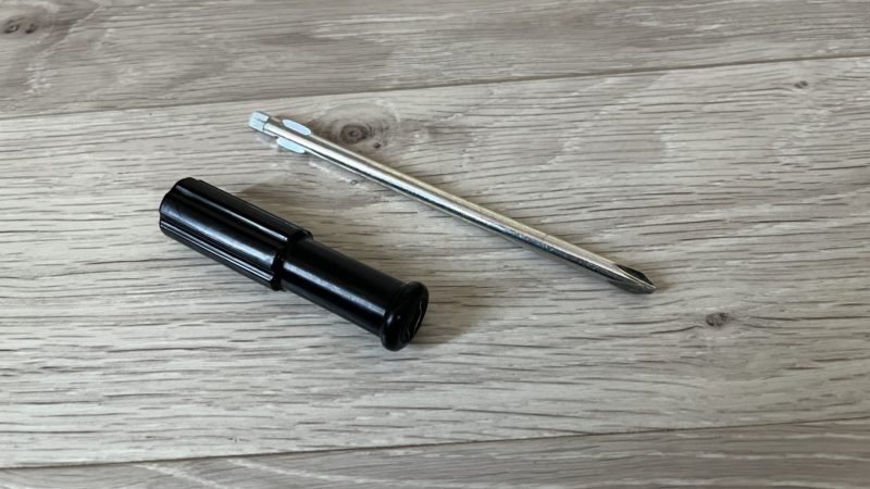 家にあったドライバーで開けてみたところ、緊急工具はプラスドライバーのみだったのですが・・・