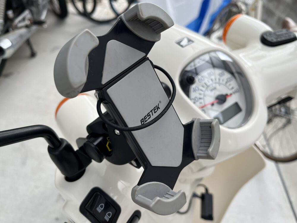 スーパーカブは高燃費ですので、市販されている500mlの携帯缶を一本所持しておくと、万が一のときも隣町までは問題なく移動できると思います。